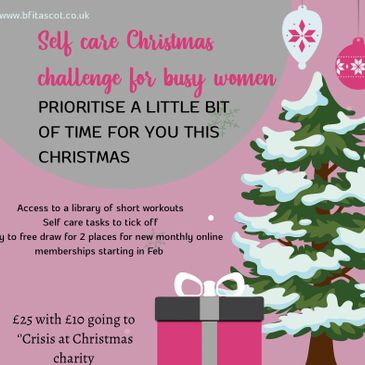 10-15 minute Christmas Self-Care Challenge, perfect for busy mums who need small, joyful pockets of time for themselves. It includes a mix of relaxation, strength, light movement, mindfulness, reading, pampering, and each day comes with a simple tick-off action.
